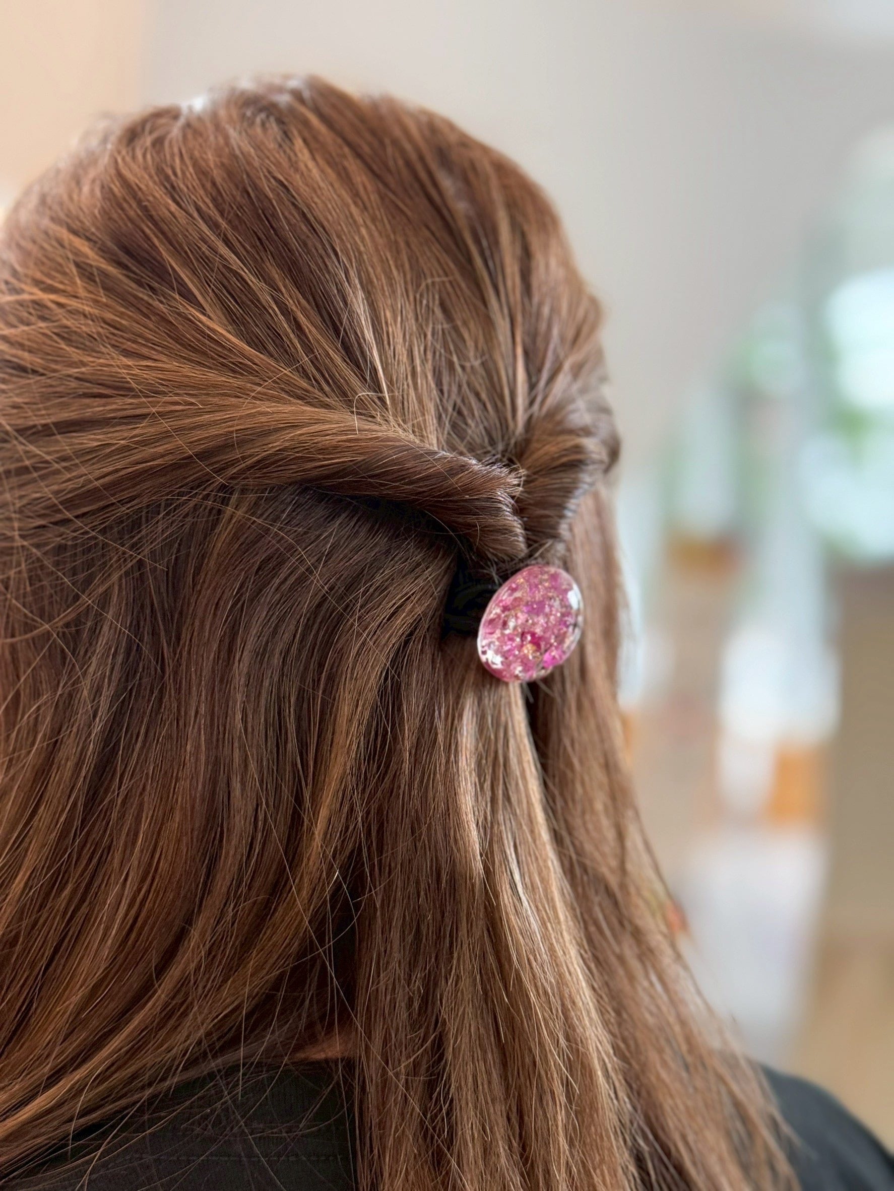 レジンヘアゴム&ピアス(ピンクローズ③)