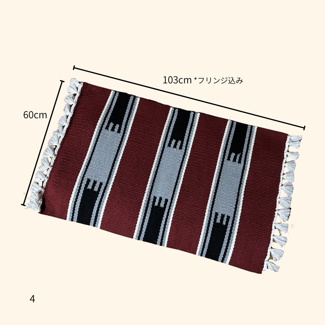 モスルの機織り職人ムハンマド先生の作品は、札幌のポップアップストアで毎回人気でした。今回は、日本の住宅のサイズに合わせて、幅60cm長さ90cm(フリンジ除く)制作していただきました。*ハンドメイドのため長さや幅に若干のズレがありますがご了承くださいませ。