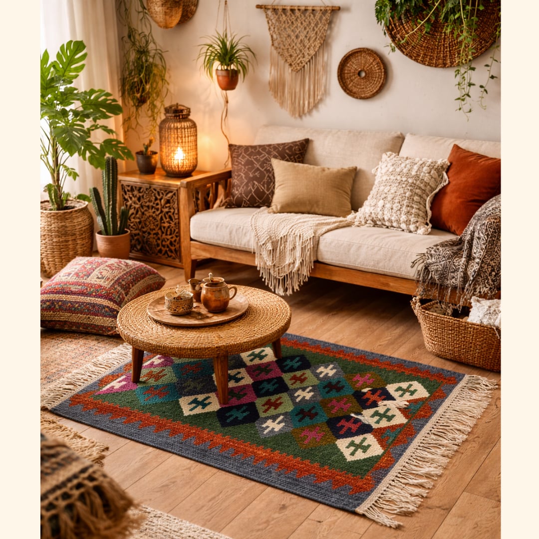 イラクの女性たちが羊毛100%で織り上げたラグマットです。