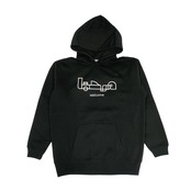 世界中で紛争や迫害によって家を追われた人たちがとうとう1億人を超えました。80人に1人が難民または国内避難民になっているということになります。このパーカの胸に描かれた汽車のような模様は、アラビア語の"マルハバ”。ハローとかようこそ!という意味です。私たちの周りにも"WELCOME"と伝えたい人たちがいます。このTシャツが笑顔のきっかけになってくれたら...。そんな思いで作りました。